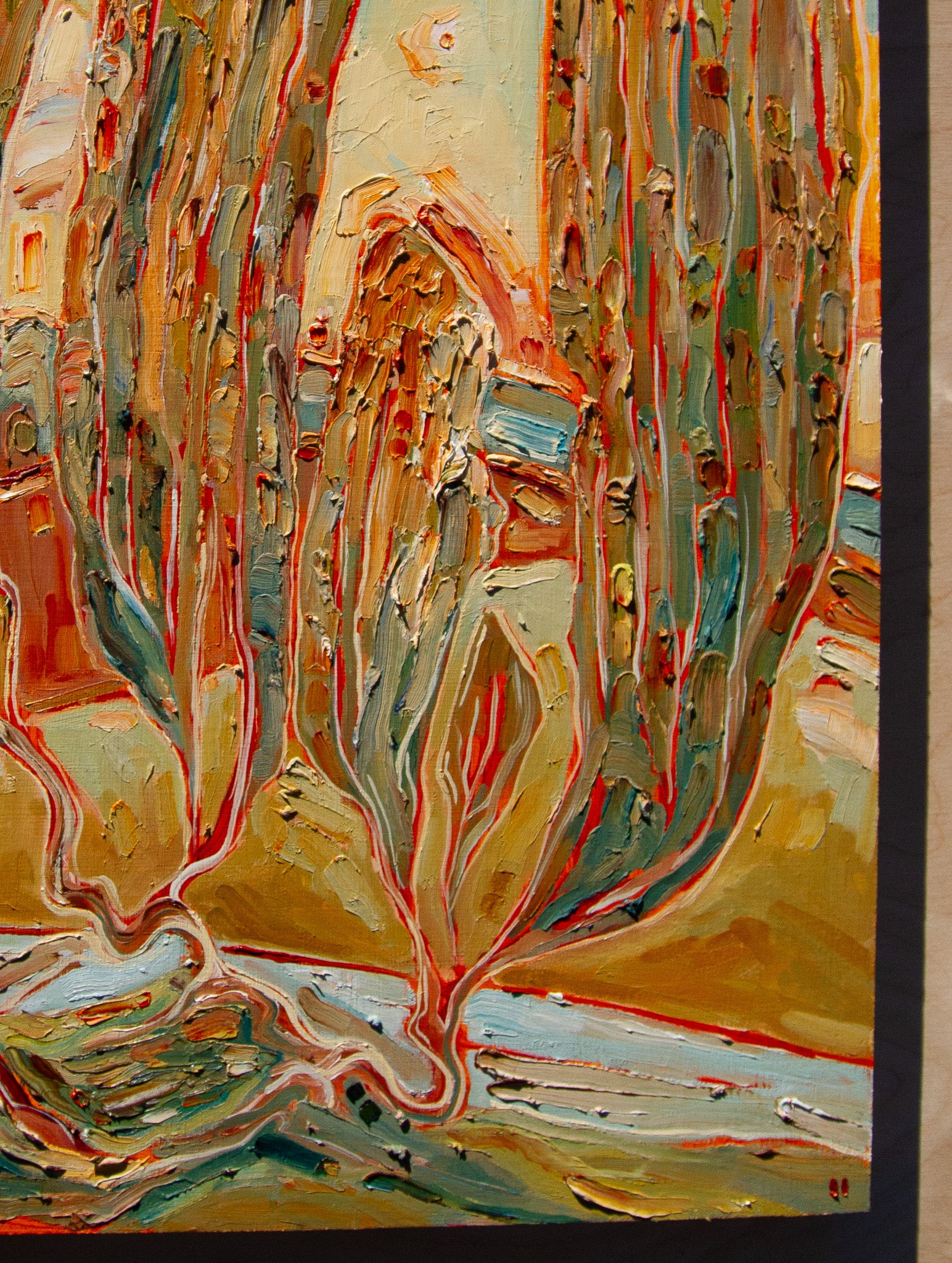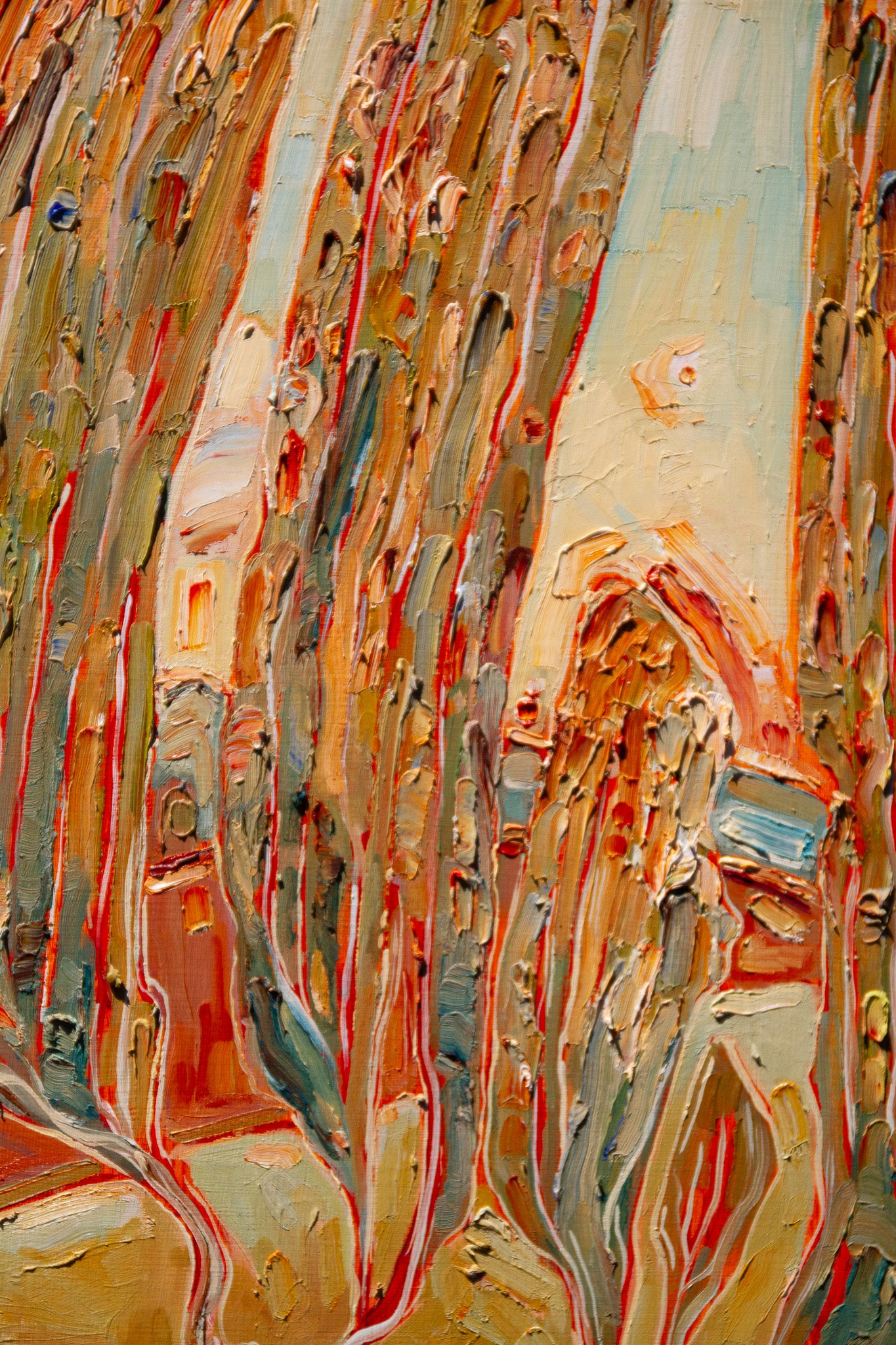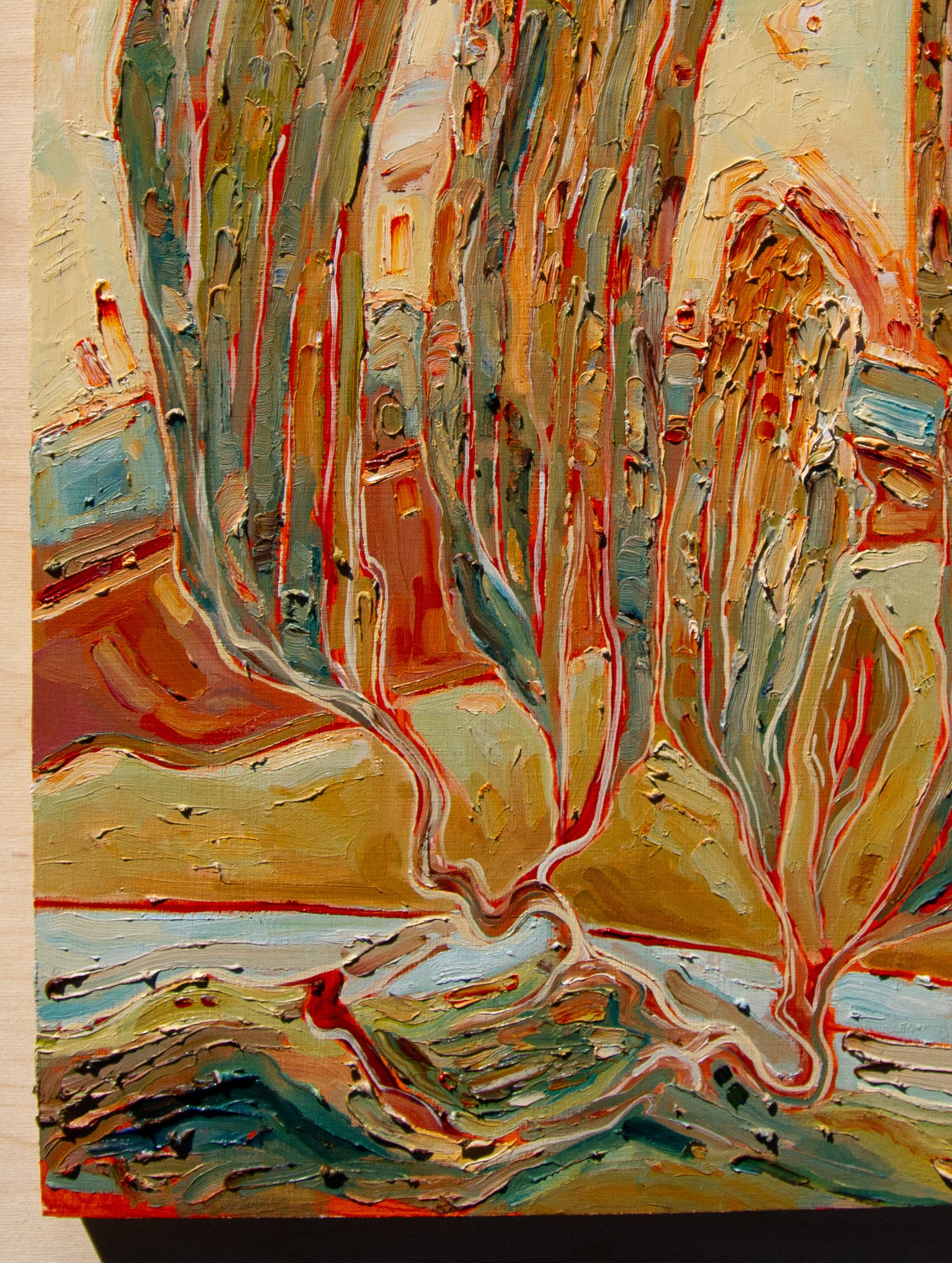 a bold painting - done in four layers over a couple of months. on coming together in hopes, growing together with shared vision, belief in a world that can only be made together and lived together. binding to another in wild belief and belonging.