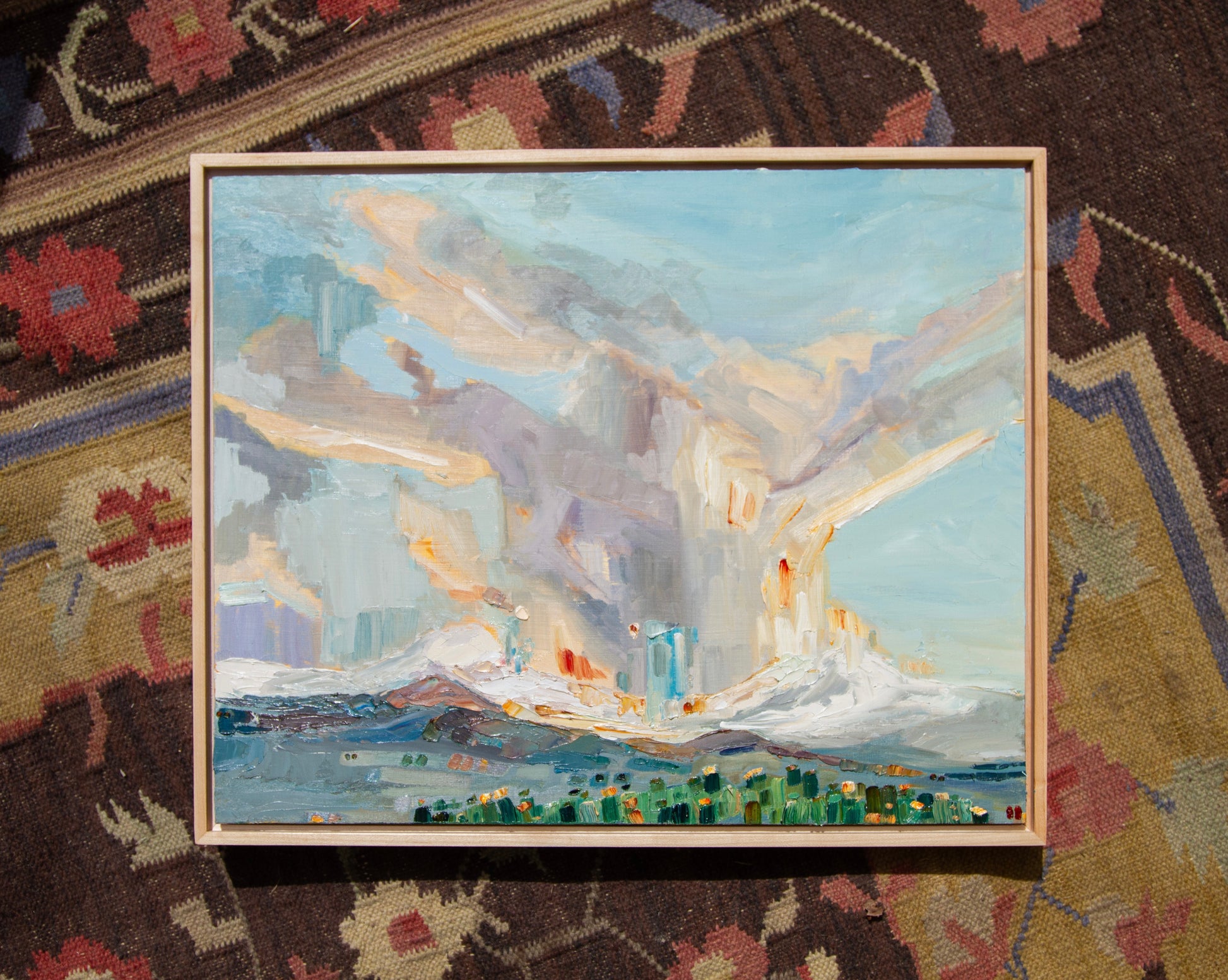 This piece is focused on the Three Sisters Mountains, and the way they push and pull storms and sunshine. I lived under them for 4 years, feeling always the swell of energy that accumulates and releases as a storm rolls over. It seems to me to be a reminder that there is a rhythm and a reliability even to things we cannot control, things that have been in sway long before our tender bodies became involved. A great power and a great tenderness that points to a deeper truth about the world we are living in.